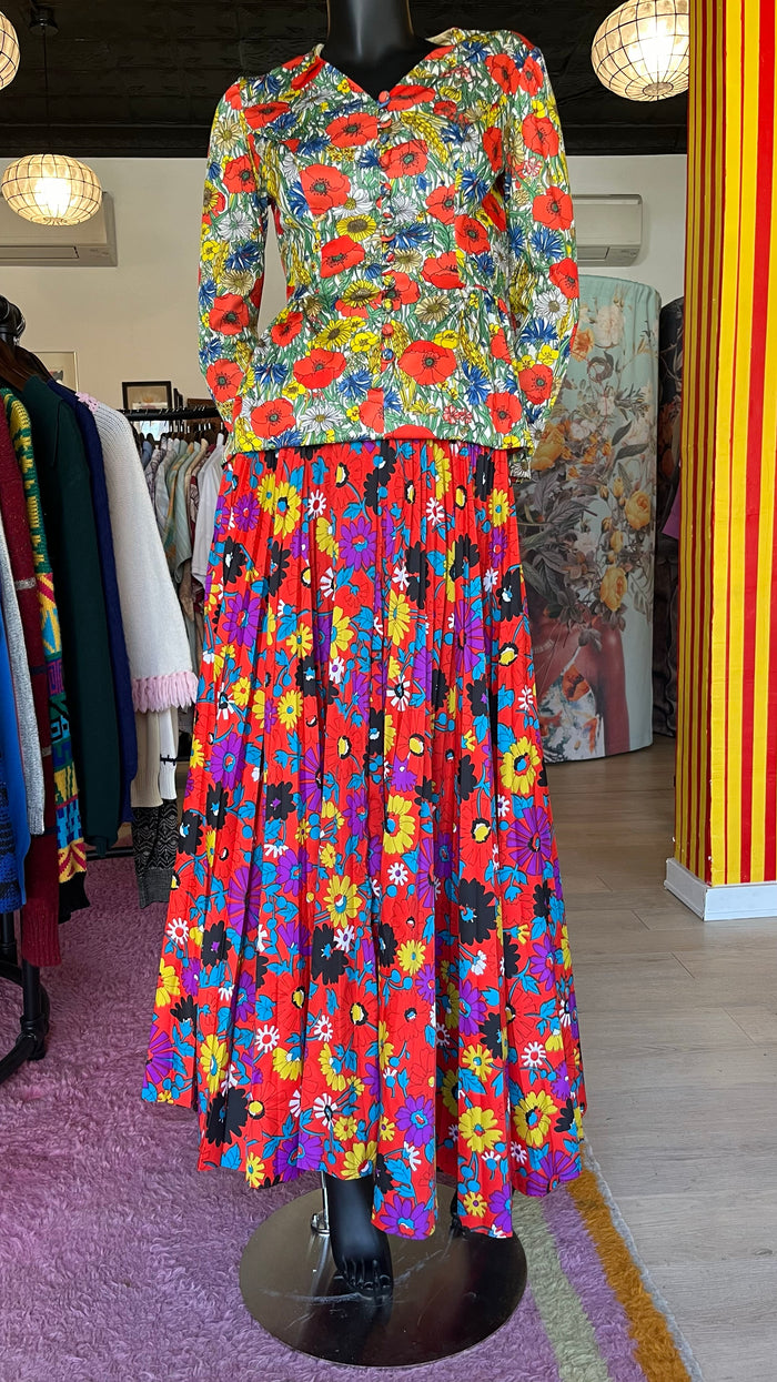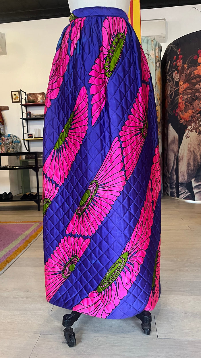60s Pink/Purple Bold Floral Pyschedelic Quilted Maxi Skirt