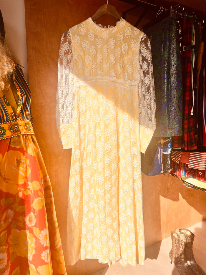 60s Green / Yellow Floral Sleeveless Shift Dress
