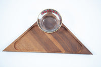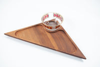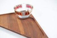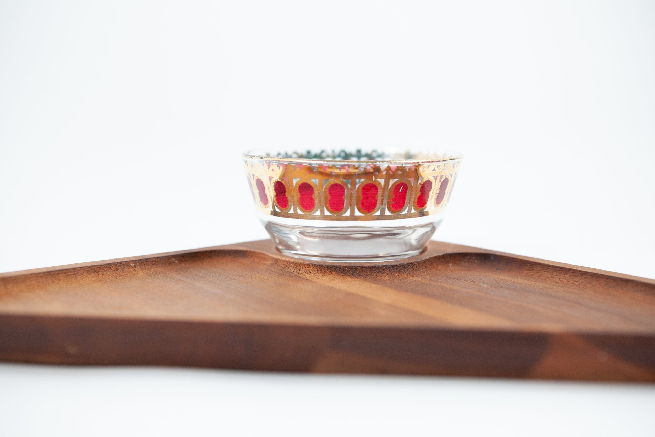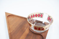 Mid century Ruby Red Serving Crackle Band with Clear Ovals Dish and Wood Tray