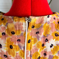 Fully Lined, a little see through, checkered pattern with checkered embroidery, snap closure at neck, overlap flaps on front, belt loops on side, pleated bottom, lightly rouged on shoulders, v-neck, white zipper.