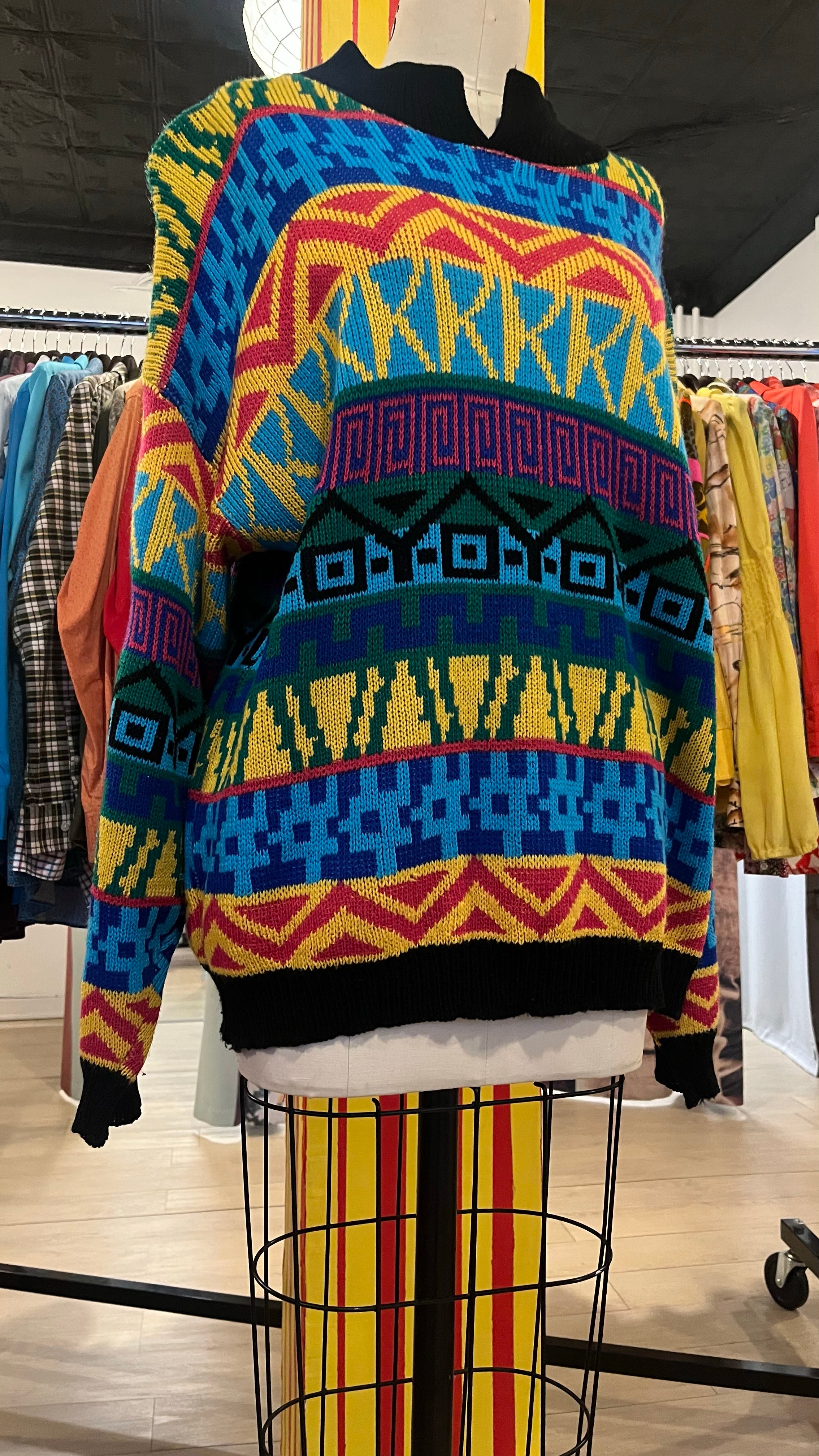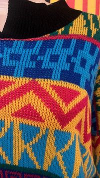 Acrylic Abstract Bold Print, Multicolored Sweater